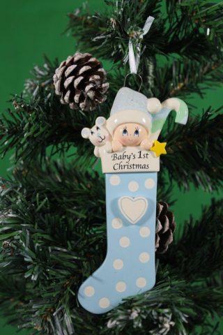 Baby Long Stocking Personalised Christmas Ornament- Blue