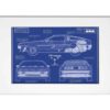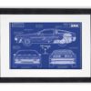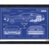 Back to the Future DeLorean time Machine Blue Print Framed Art Print