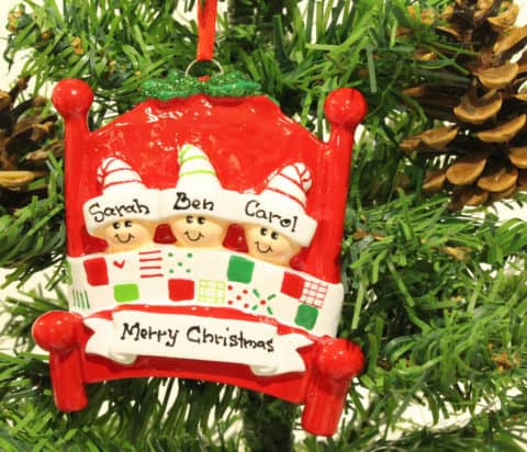 Beautiful ceramic, personalised Christmas Tree Decorations with customised text are unique gifts for those special in your life. These delicate figures can be purchaed in family groups of 2, 3, 4, 5, 6, 7, 8 or 9 so every member of the family can be named in this keepsake ornnament, with no extra charge for personalisation.