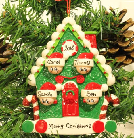 Candy Cane House Personalised Christmas Ornament - Family of 4