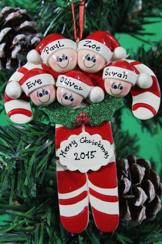 Candycanes Personalised Christmas Ornament - Family of 5