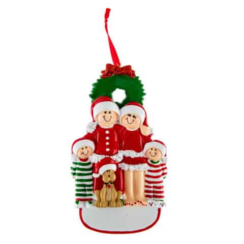 Christmas Eve Personalised Christmas Ornament - Family of 4 with dog