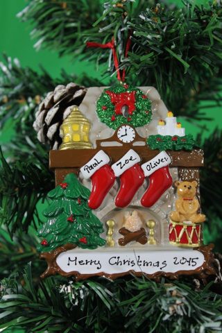 Fireplace Stocking Personalised Christmas Ornament - Family of 3