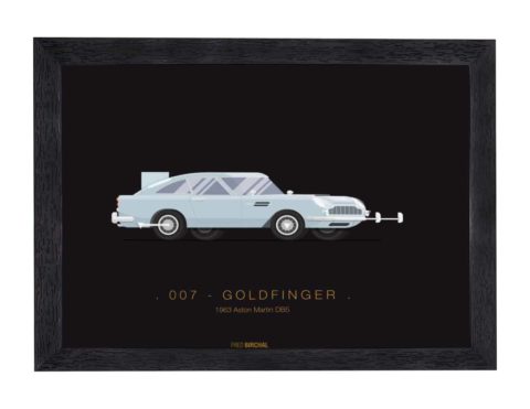 Nothing can quite announce the arrival of James Bond as an Aston Martin DB5 pulling up on screen. The vehicle is synonymous with his character, making this the ultimate 007 car art print. Bond is quintessentially British, a super spy working to keep his country safe while indulging in beautiful women, gadgets and cars. Goldfinger marked Bond’s third theatrical feature, with Sean Connery starring as the main protagonist.