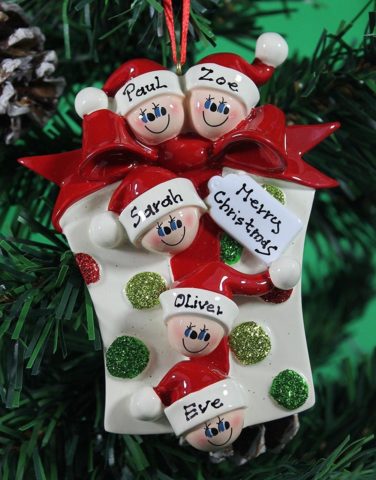 Glitter Gift Personalised Christmas Ornament - Family of 5