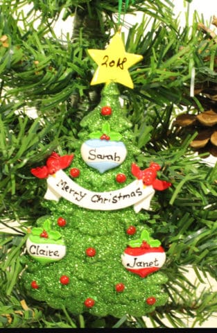 Beautiful ceramic, personalised Christmas Tree Decorations with customised text are unique gifts for those special in your life. These delicate figures can be purchaed in family groups of 2, 3, 4, 5, 6, 7, 8 or 9 so every member of the family can be named in this keepsake ornnament, with no extra charge for personalisation.