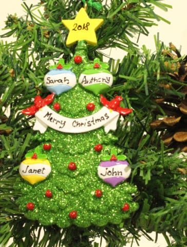 Green Christmas Tree Personalised Christmas Ornament - Family of 4