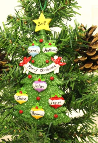 Green Christmas Tree Personalised Christmas Ornament - Family of 6