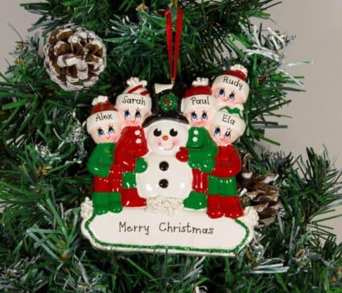 Making A Snowman Personalised Christmas Ornament - Family of 4
