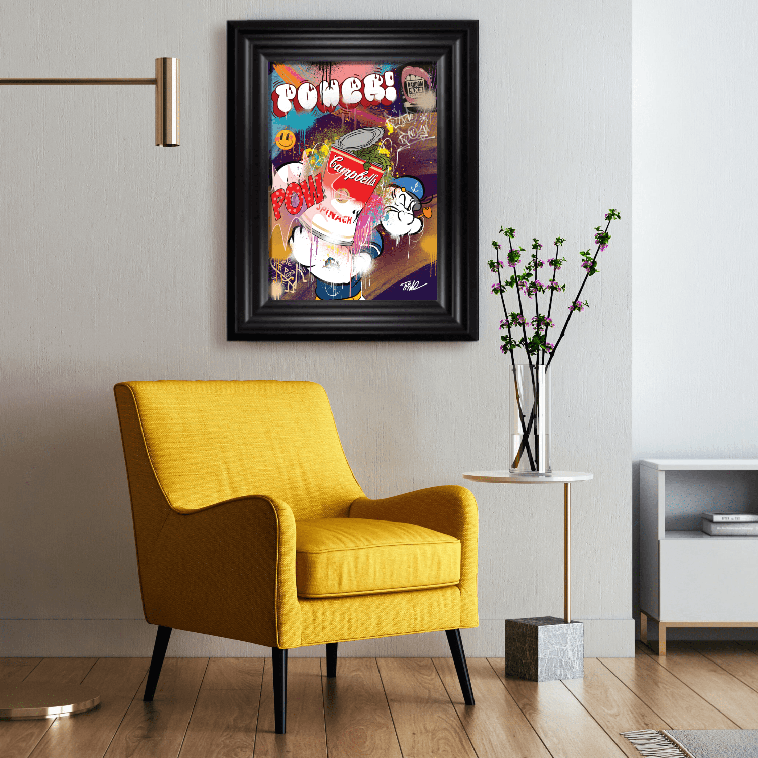 This urban wall art print is perfect for avid art collectors, Popeye fans and those looking to support emerging artists and their careers. It comes in a large poster format print, ready to take the focus of a room with its bright colours and bold imagery.