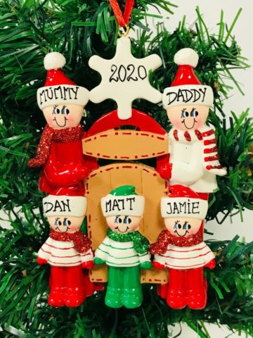 Beautiful ceramic, personalised Christmas Tree Decorations with customised text are unique gifts for those special in your life. These delicate figures can be purchaed in family groups of 2, 3, 4, 5, 6, 7, 8 or 9 so every member of the family can be named in this keepsake ornnament, with no extra charge for personalisation.