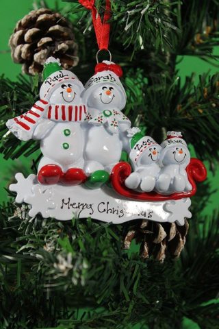 Snowman Sled Personalised Christmas Ornament - Family of 4