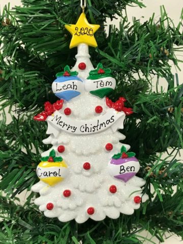 Beautiful ceramic, personalised Christmas Tree Decorations with customised text are unique gifts for those special in your life. These delicate figures can be purchaed in family groups of 2, 3, 4, 5, 6, 7, 8 or 9 so every member of the family can be named in this keepsake ornnament, with no extra charge for personalisation.