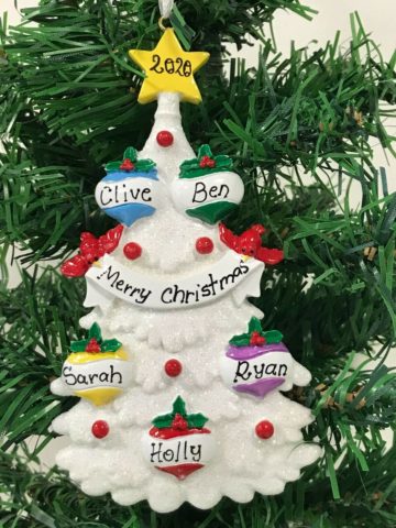 Beautiful ceramic, personalised Christmas Tree Decorations with customised text are unique gifts for those special in your life. These delicate figures can be purchaed in family groups of 2, 3, 4, 5, 6, 7, 8 or 9 so every member of the family can be named in this keepsake ornnament, with no extra charge for personalisation.
